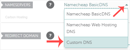 4. Scroll down to the Nameservers option and select Custom DNS from the drop-down menu.